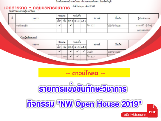 รายการแข่งขันทักษะวิชาการ กิจกรรม "NW Open House 2019"
