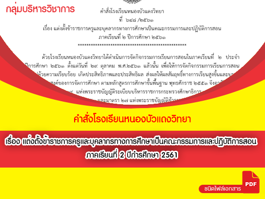 คำสั่ง แต่งตั้งข้าราชการครูและบุคลากรทางการศึกษาเป็นคณะกรรมการและปฎิบัติการสอน