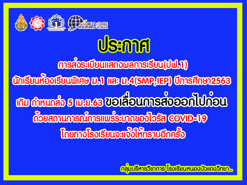 ประกาศ เลื่อน ..การส่งระเบียนแสดงผลการเรียน(ปฟ.1) นักเรียนห้องเรียนพิเศษ ม.1 และ ม.4(SMP,IEP) ปีการศ