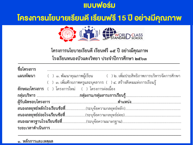แบบฟอร์ม โครงการนโยบายเรียนดี เรียนฟรี 15 ปี อย่างมีคุณภาพ