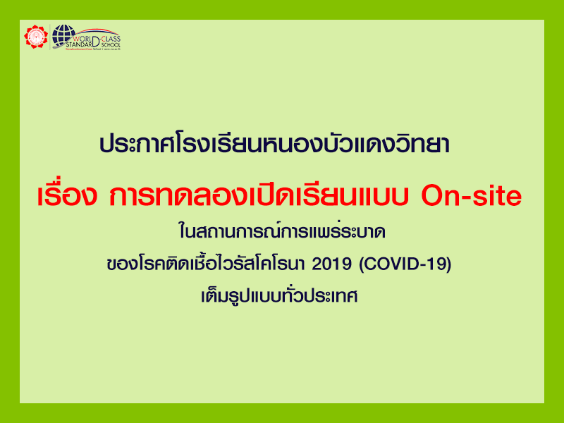 ประกาศโรงเรียนหนองบัวแดงวิทยา เรื่อง การทดลองเปิดเรียนแบบ On-site ในสถานการณ์การแพร่ระบาดของโรคติดเช