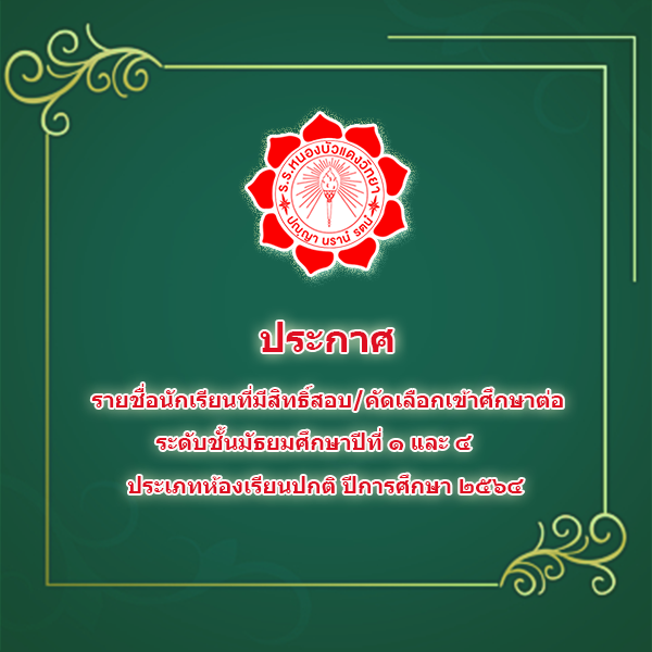 ประกาศโรงเรียนหนองบัวแดงวิทยา เรื่องรายชื่อนักเรียนที่มีสิทธิ์สอบ/คัดเลือกเข้าศึกษาต่อระดับชั้นมัธยมศึกษาปีที่ 1 และ 4 ภาคเรียนปกติ ประจำปีการศึกษา 2564